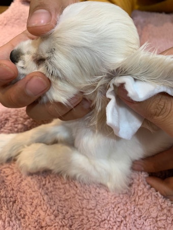 강아지 전용 귀 세정제를 사용하는 것이 좋습니다.