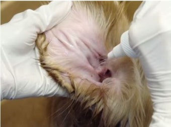 - 강아지가 머리를 흔들어 세정제를 밖으로 배출하게 합니다.