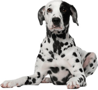 앉아 있는 강아지, 뛰는 강아지, 누워 있는 강아지.