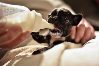 만약 엄마 젖을 먹을 수 없다면, 강아지 전용 분유를 먹여야 합니다.