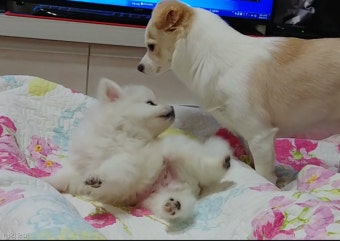 강아지는 “좋아해!”를 크게 말하고,