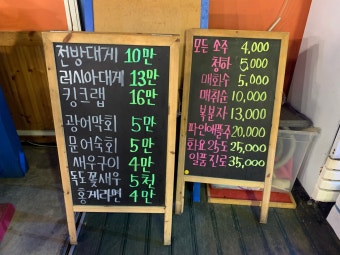 또한 대게 단품 요리나 킹크랩, 랍스터 단품도 시장 시세에 따라 가격이 조정되기 때문에, 고객이 바가지를 쓸 걱정 없이 투명하게 식사를 즐길 수 있습니다. 가격표를 보면, 원산지와 무게, 제공 수량 등이 꼼꼼하게 기재되어 있어서 신뢰가 가죠.