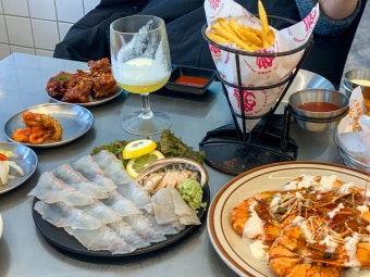 대표 사이드로는 홍합탕, 매운탕, 해물라면, 가리비 구이, 새우튀김, 전복버터구이 등이 있습니다. 특히 해물라면은 매콤한 국물에 신선한 해산물이 듬뿍 들어가 있어 술안주나 식사 마무리로 딱이죠. 국물이 칼칼하면서도 깊은 맛이 있어 ‘라면이 이 정도 맛일 수 있어?’라는 감탄이 절로 나옵니다.