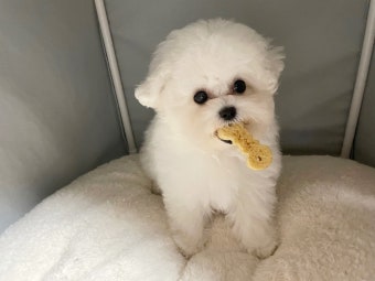 비숑 프리제는 곱슬곱슬한 흰 털로 인해 구름 같은 외모를 가지고 있습니다. 털 빠짐이 적지만, 털이 엉키기 쉬워 정기적인 관리가 필요합니다.