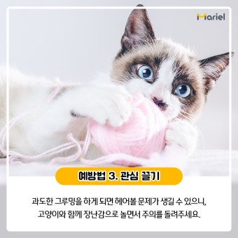 → 하루 최소 30분 이상은 함께 놀아주는 게 좋아요. 지능이 높기 때문에 퍼즐 장난감이나 낚싯대 놀이로 흥미를 유도하세요.