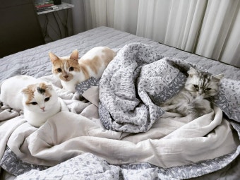 기존 고양이와 새 고양이를 바로 만나게 하는 것은 금물입니다. 82cook 회원들은 최소 1~2주 동안 격리 생활을 하면서 냄새를 교환하는 방식(담요나 장난감을 바꿔 주기)을 추천합니다.