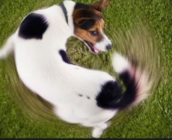 기쁨이나 흥분 상태에서 흔드는 힘이 세서 생기는 행동이에요. 꼬리를 통해 감정을 주체 못하고 표현하는 거죠.