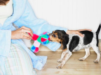 - 손 대신 장난감을 물게 하기