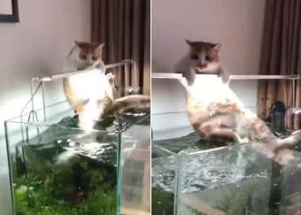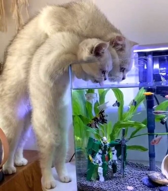 4. 고양이가 어항 위에 올라앉는 행동은 왜 하나요?