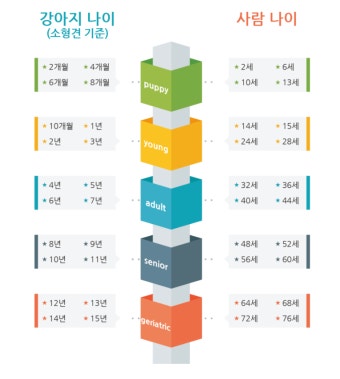 - 소형견: 2살 이후 매년 사람 나이로 5년씩 증가