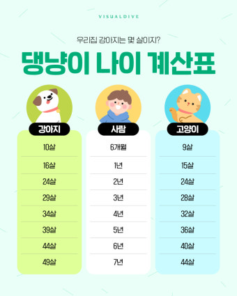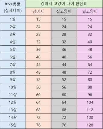 - 대형견: 2살 이후 매년 사람 나이로 7년씩 증가